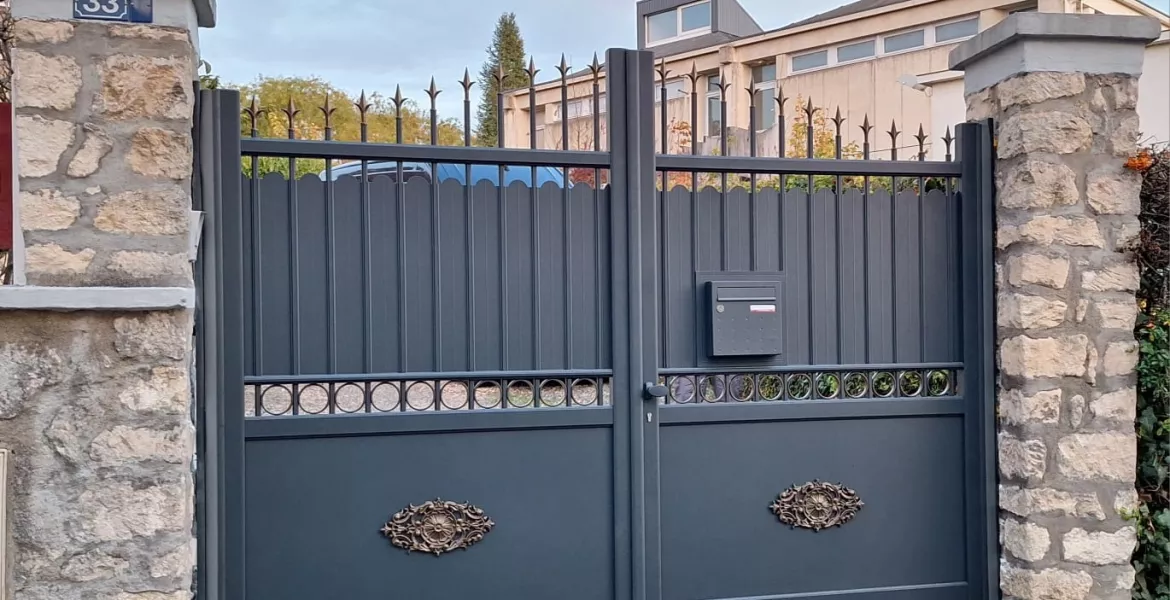 Portail aluminium Rétro avec boîte aux lettre intégrée