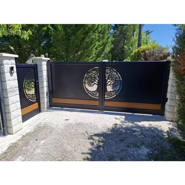 Portail et Portillon Aluminium Bicolore avec Motif Bambou
