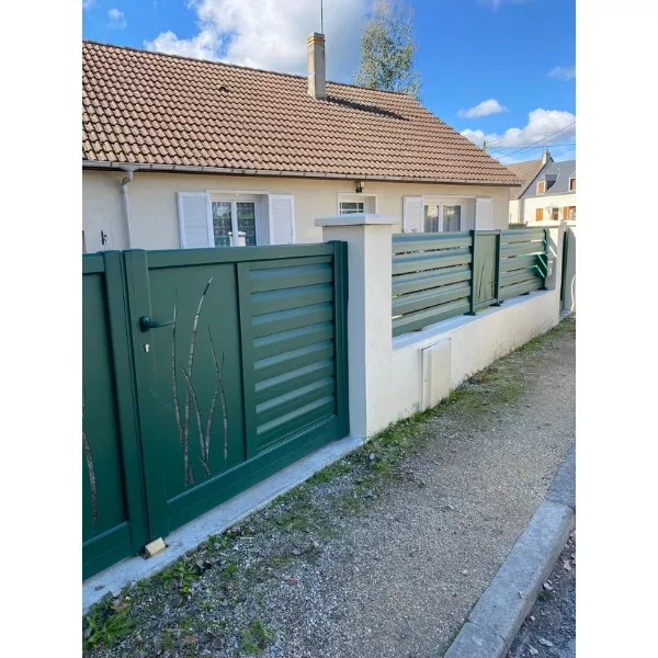 PORTAIL ALU TOLE DECO ET LAMES PERSIENNEES VERT