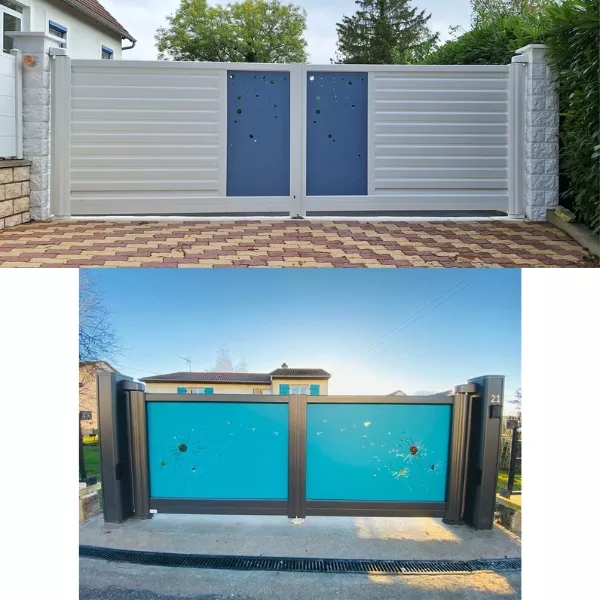 PORTAIL ALU EN MODE CREATION AVEC TOLE DECO DU CLIENT