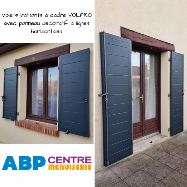 VOLETS BATTANTS A CADRE (VOLPRO) avec panneau décoratif à lignes horizontales