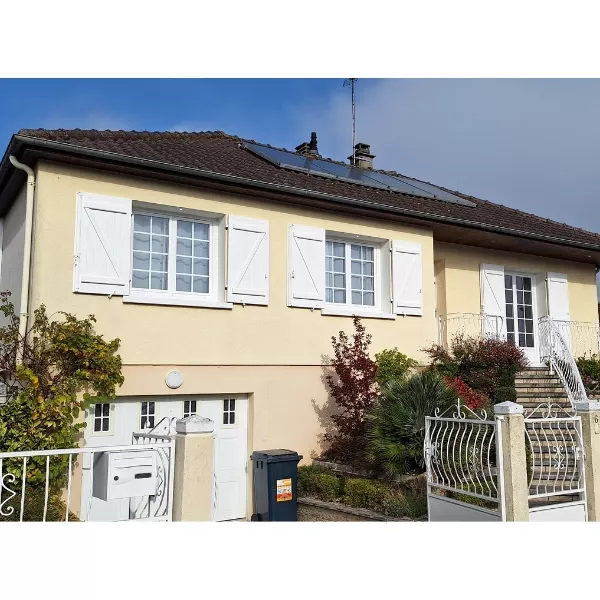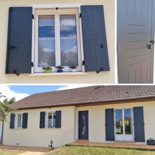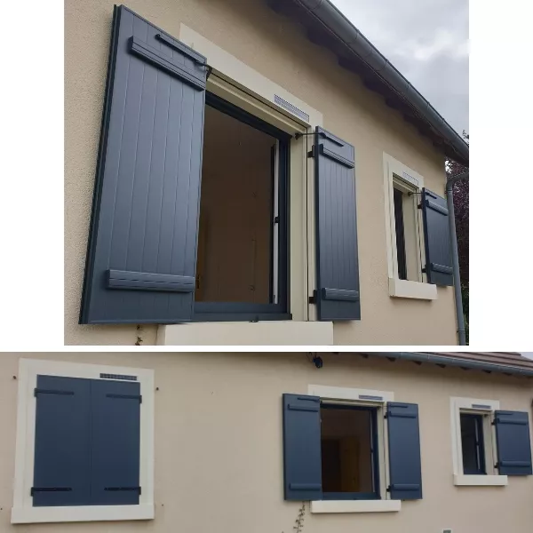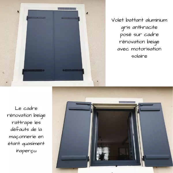 Volet battant aluminium motorisé solaire posé sur cadre rénovation